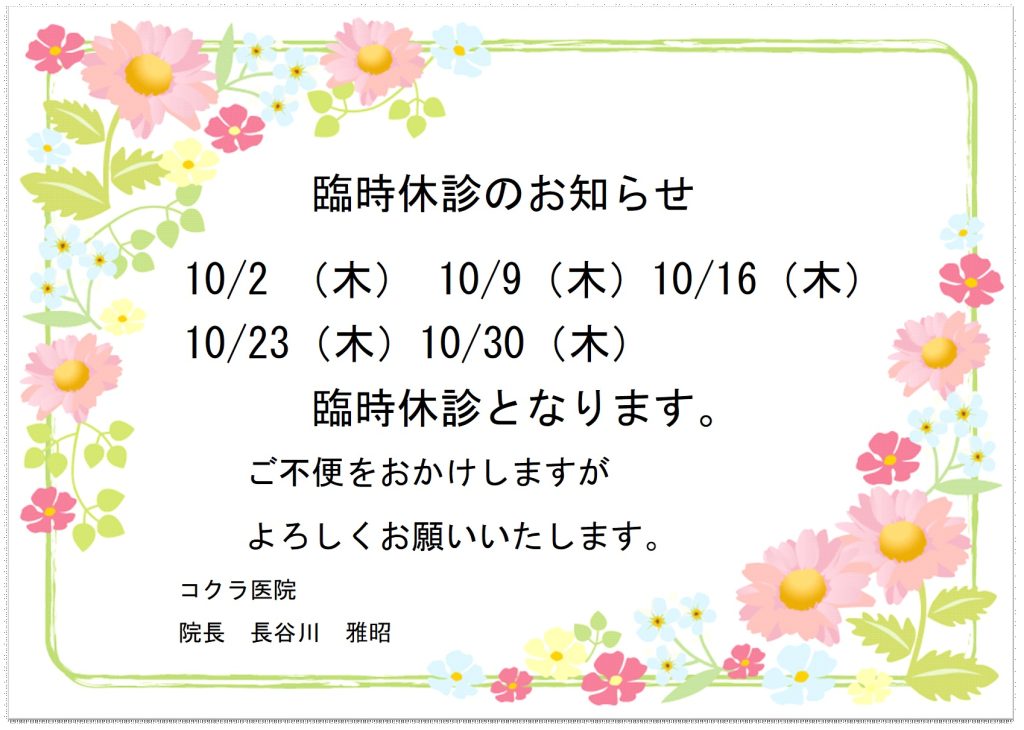 カテゴリー: 大切なお知らせ&ご案内 | 投稿日: 2025年9月29日 | 投稿者: 医療法人社団 コクラ医院